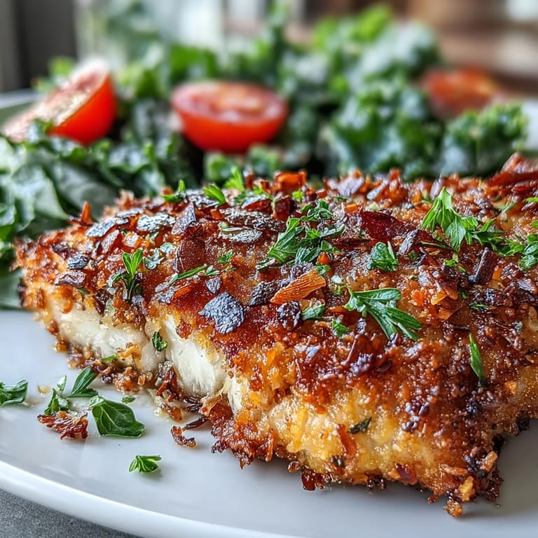 Save to Pinterest My kitchen smelled like toasted almonds and lemon before I even realized what I was making. I had chicken thawing on the counter, a bag of almond meal I bought on impulse, and kale that needed using before it went limp. What started as fridge cleanup turned into one of those accidental wins you want to repeat every week. The crust stayed crispy, the kale tasted bright and peppery, and for once, dinner felt both light and completely satisfying.