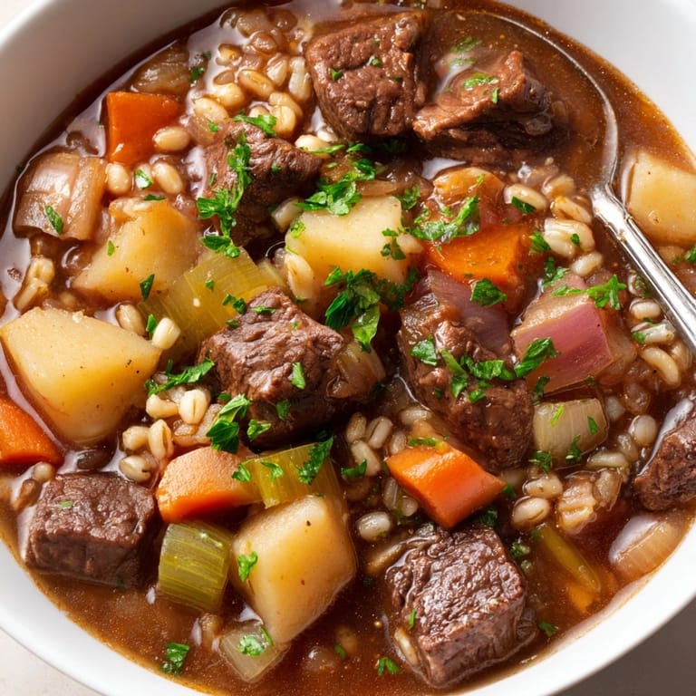 Save to Pinterest This Beef and Barley Stew with Root Vegetables is the ultimate cozy meal for cold days rich with tender beef hearty grains and a soft earthy sweetness from root veggies all swimming in a savory aromatic broth My go to for Sunday suppers it fills the whole house with warmth and always draws everyone back to the table for seconds