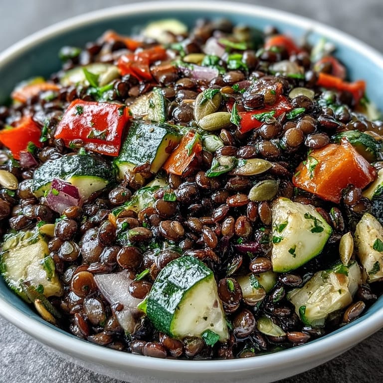 Save to Pinterest There's something about black lentils that caught me off guard the first time I really paid attention to them—those tiny, glossy little discs hold their shape like they're determined to prove they're not mushy like their cousins. I was standing in my kitchen on a Tuesday afternoon, exhausted from the day, and I wanted something that felt alive on the plate but didn't demand hours of my time. This salad came together almost by accident, born from whatever vegetables needed rescuing from the back of my fridge, but it became the thing I keep making because it somehow tastes better the next day, and because it finally convinced me that eating well doesn't have to feel like punishment.