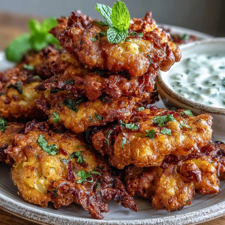 Save to Pinterest The sizzle startled me the first time I dropped a spoonful of battered cauliflower into hot oil. It bloomed into a golden tangle almost instantly, filling the kitchen with the warm smell of toasted cumin and chickpea flour. I was trying to recreate the bhajis I'd eaten at a tiny restaurant tucked behind a train station, where they arrived in a paper-lined basket, still crackling. That batch turned out lopsided and a little pale, but I ate every single one standing at the counter, dipping them into cold yogurt until my fingers were sticky.