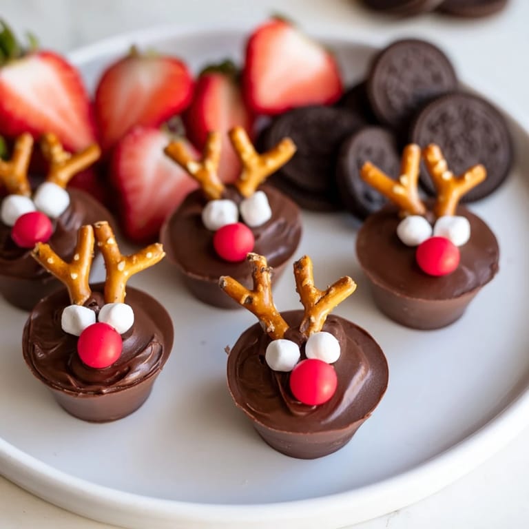 Save to Pinterest A whimsical and festive dessert board featuring chocolate pudding cups decorated as reindeer, surrounded by an array of delicious treatsβperfect for holiday gatherings or family fun.
