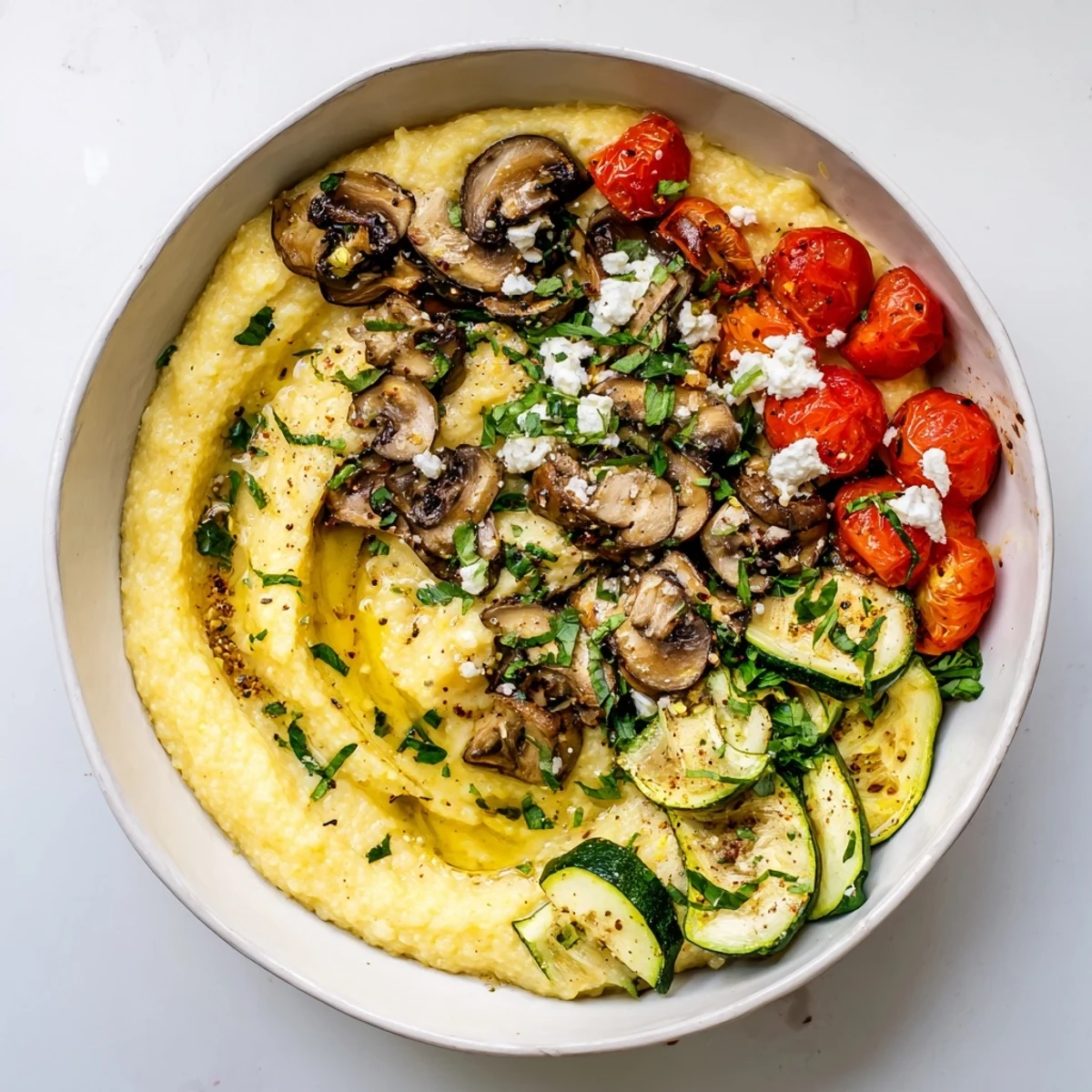 Save to Pinterest A comforting, budget-friendly dish featuring creamy polenta as the base, topped with a variety of flavorful, customizable toppings for a satisfying meal.