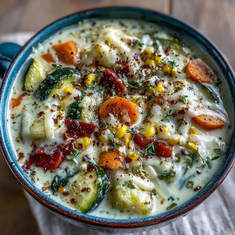 Save to Pinterest There's something about a pot of creamy soup simmering on the stove that makes everything feel okay. I discovered this particular combination quite by accident one chilly Wednesday when I was trying to recreate two soups I loved but couldn't choose between—a vegetable chowder and a garlic Parmesan number I'd had at a dinner party. Instead of deciding, I just threw together the best parts of both, added an embarrassing amount of cheese, and watched it transform into something my family asked for again and again. That first bowl, with its silky cream coating my spoon and the cheese stretching between me and the bowl, felt like I'd figured out something important.