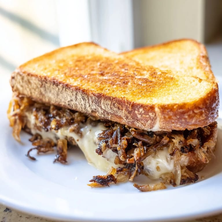 Ensure your crispy onions are well-drained on paper towels after frying to remove excess oil. Assemble the sandwich just before cooking, and don't overload with onions. Cooking over medium-low heat allows the cheese to melt completely without burning the bread.