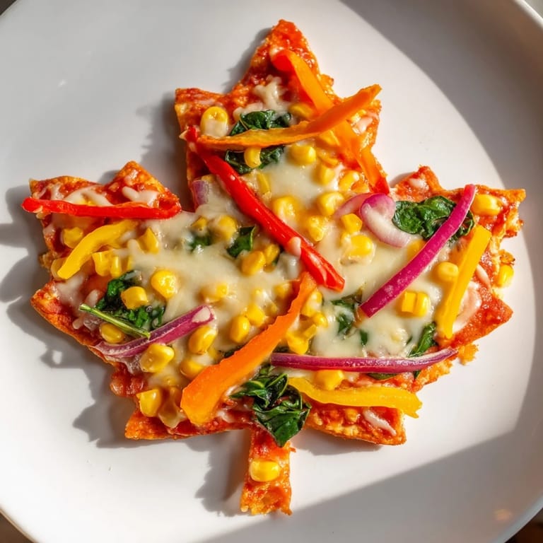 Save to Pinterest Miniature pizzas shaped like maple leaves, topped with vibrant autumn-hued vegetables and a sweet touch of maple, perfect for festive gatherings.