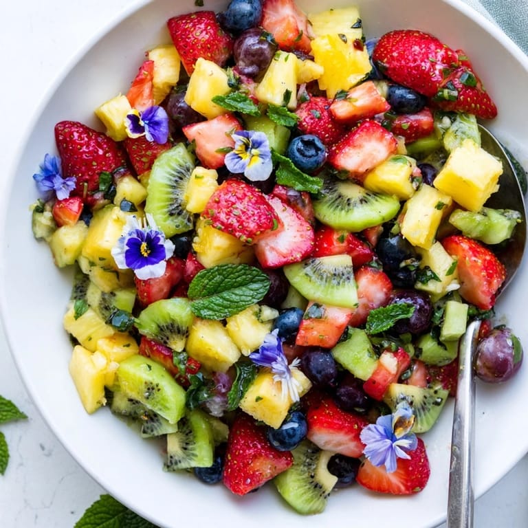 Save to Pinterest A vibrant and refreshing fruit salad featuring a colorful array of seasonal fruits, lightly sweetened and beautifully presented perfect for any festive occasion.