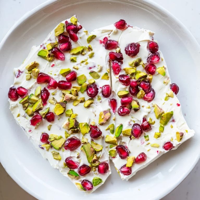 Save to Pinterest A refreshing and colorful frozen treat featuring creamy yogurt, sweet-tart pomegranate seeds, and crunchy pistachios: perfect for a healthy snack or light dessert.