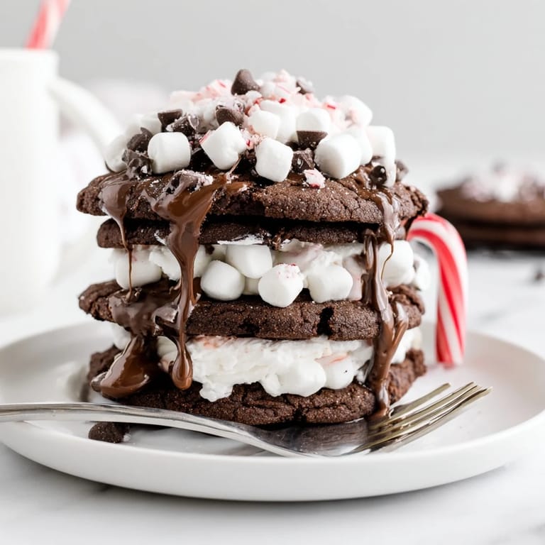 Save to Pinterest A playful, decadent dessert featuring layers of chocolate cookies and fluffy marshmallow frosting, stacked to resemble a cozy mug of hot cocoa.