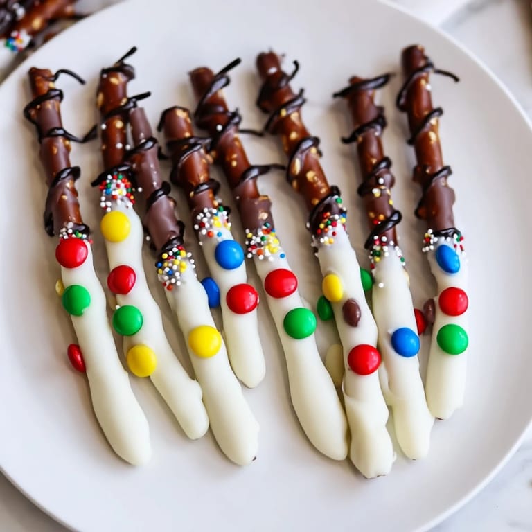 Save to Pinterest Celebrate the holiday season with a delightful no-bake treat that's as charming as it is tasty: Pretzel Sticks and Dip Christmas Lights. This easy and festive snack transforms simple pretzel rods into colorful strands of glowing lights using vibrant candy melts and a few decorative touches. Perfect for entertaining kids or adding a sweet centerpiece to your party table, these Christmas lights are quick to make and require no oven time, making holiday fun accessible to all skill levels.
