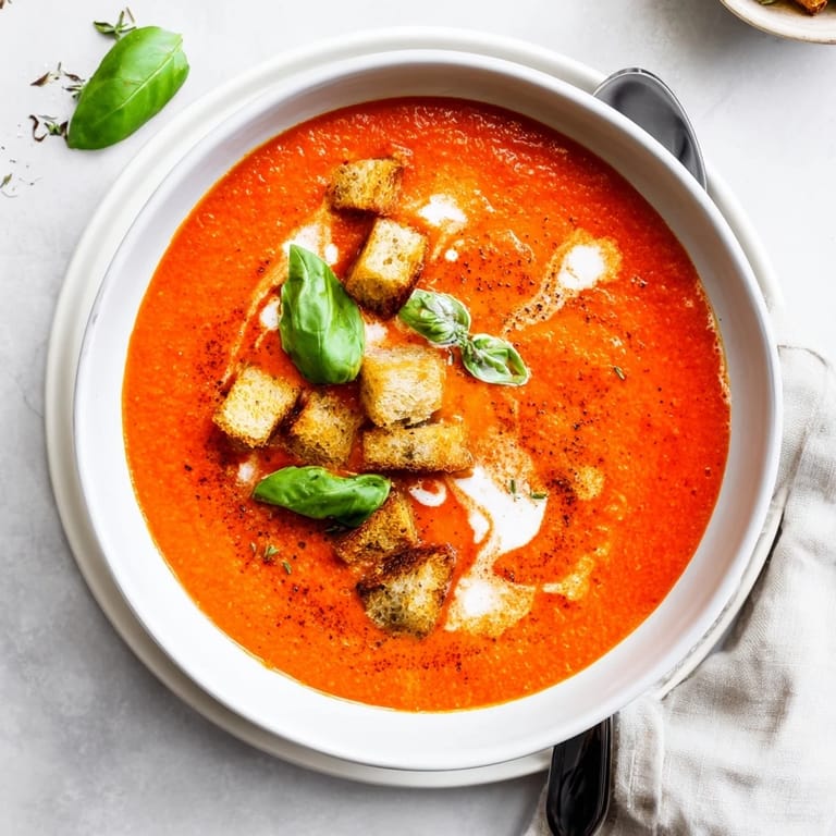 Save to Pinterest The smell of roasting tomatoes has become my personal signal that comfort food season has officially arrived. I stumbled onto this technique during a particularly gray September when I had too many tomatoes from my farmers market run and not enough energy for anything complicated. Something magical happens when tomatoes concentrate in that high heat, turning into something deeper and sweeter than fresh could ever be. My roommate wandered into the kitchen that day, mug of tea in hand, and said something about the apartment smelling like an Italian grandmother's kitchen. We ended up eating dinner standing at the counter, the soup barely cool enough to eat, with croutons scattered everywhere.