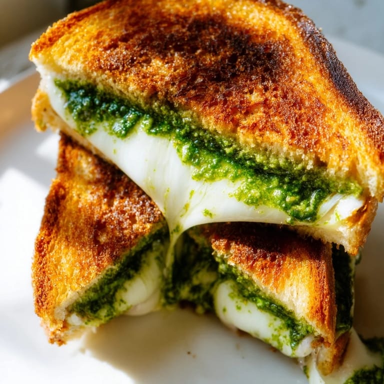 Save to Pinterest The rain was drumming against my kitchen window last Tuesday when I remembered half a jar of pesto languishing in the fridge. Something about gray weather makes me crave that specific combination of warm bread and melted cheese, but I wanted to elevate it beyond my usual routine. The three-cheese blend was an experiment born from cleaning out my cheese drawer, and honestly, it's become my new standard.