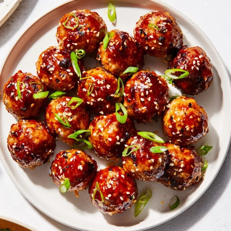 Save to Pinterest Juicy chicken meatballs coated in a sticky, sweet, and spicy honey glaze&mdashperfect for appetizers or as a main course with rice or noodles.