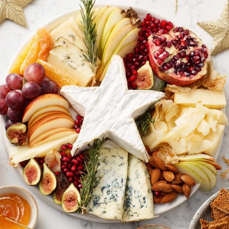 Save to Pinterest An elegant and visually stunning cheese platter inspired by the Star of Bethlehem, featuring artisanal cheeses, fresh fruit, and gourmet accompaniments perfect for special occasions or festive gatherings.