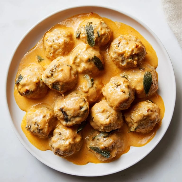 Save to Pinterest Juicy turkey meatballs simmered in a creamy, aromatic pumpkin sage sauce—an easy, comforting dish perfect for fall or any cozy evening.